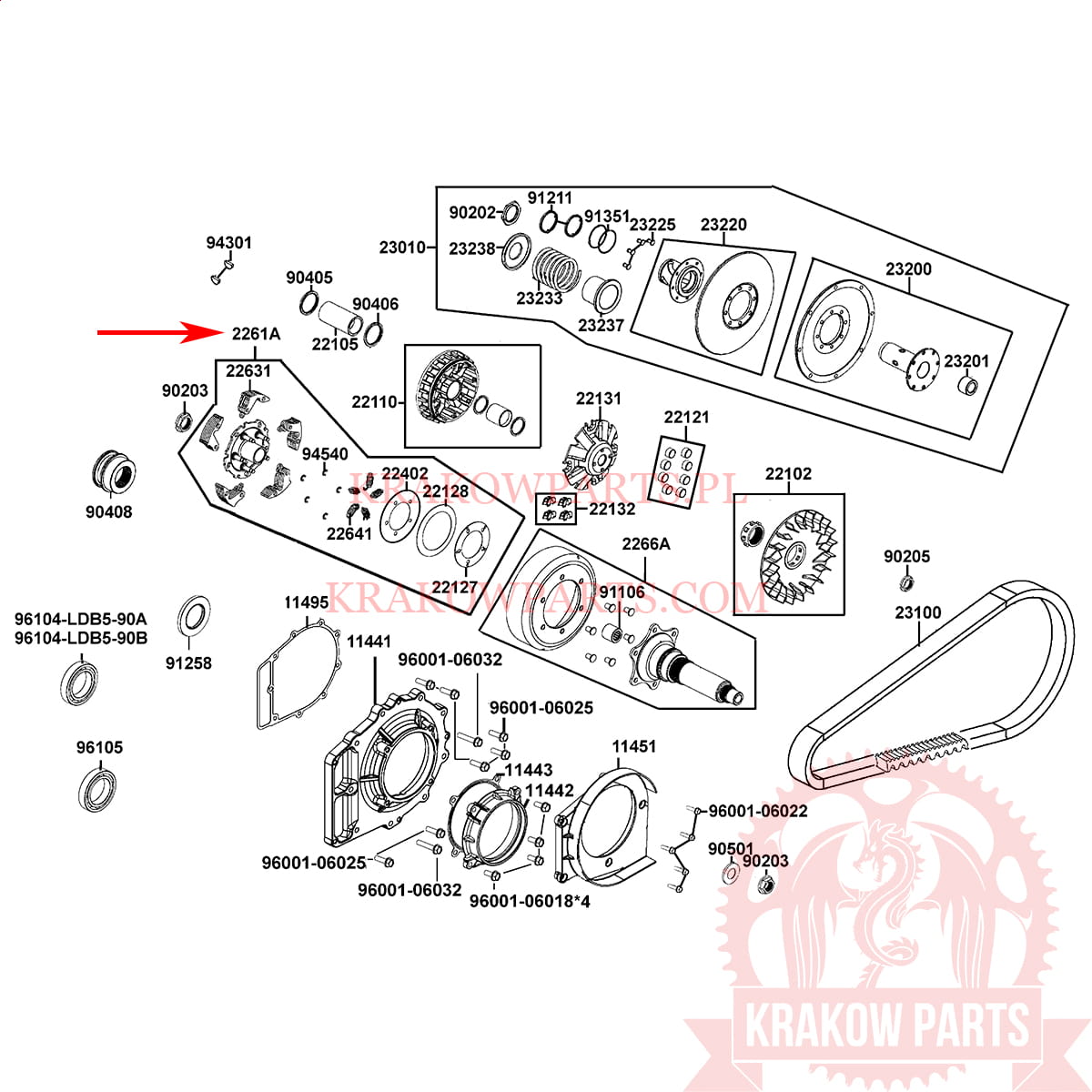 PLATE ASSY PRIMARY DRIVE Kymco MXU 500, UXV 500, original 2261A-LDB5-900