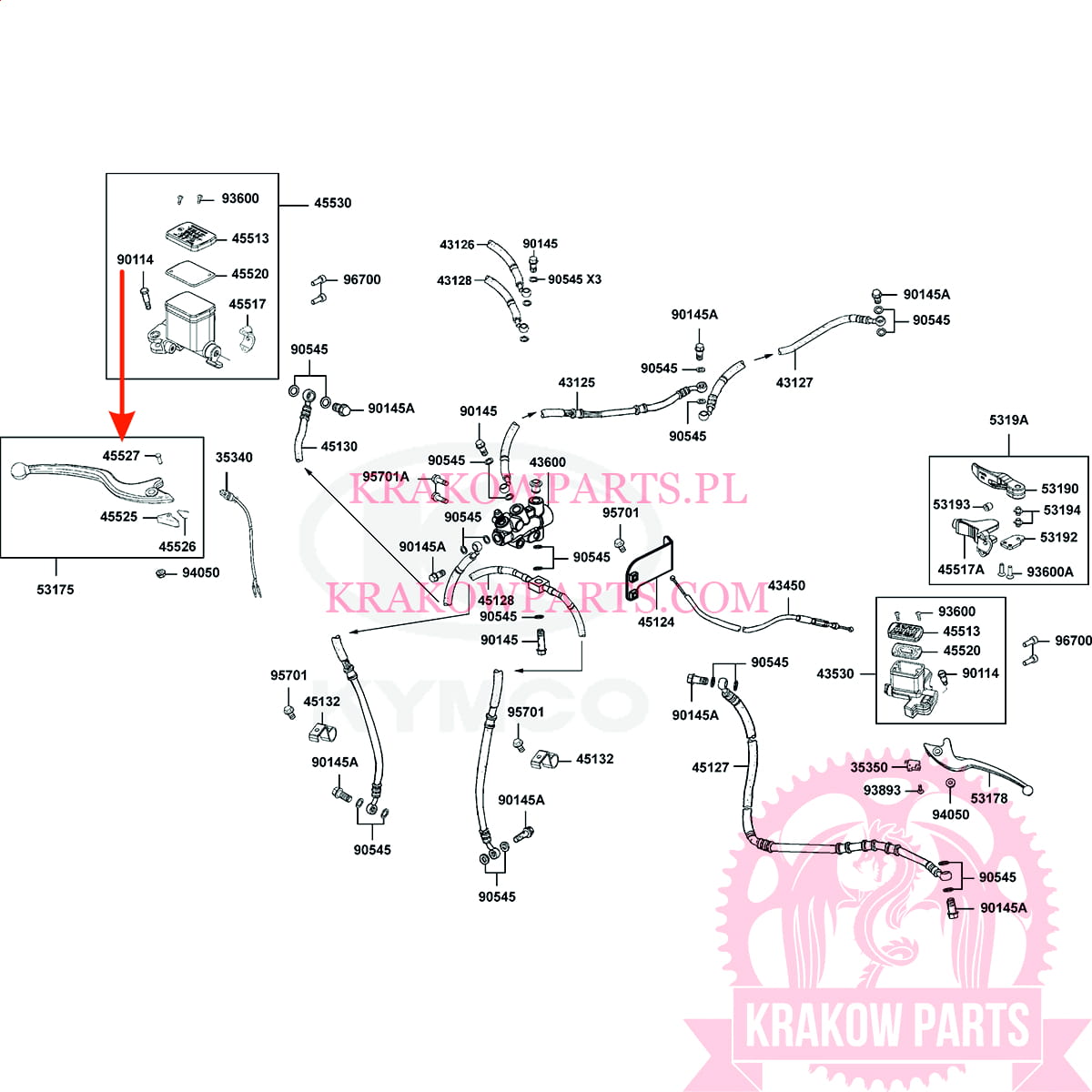 TRZPIEŃ DŹWIGNI HAMULCA Kymco MXU 700, oryginał 45527-LBA7-900