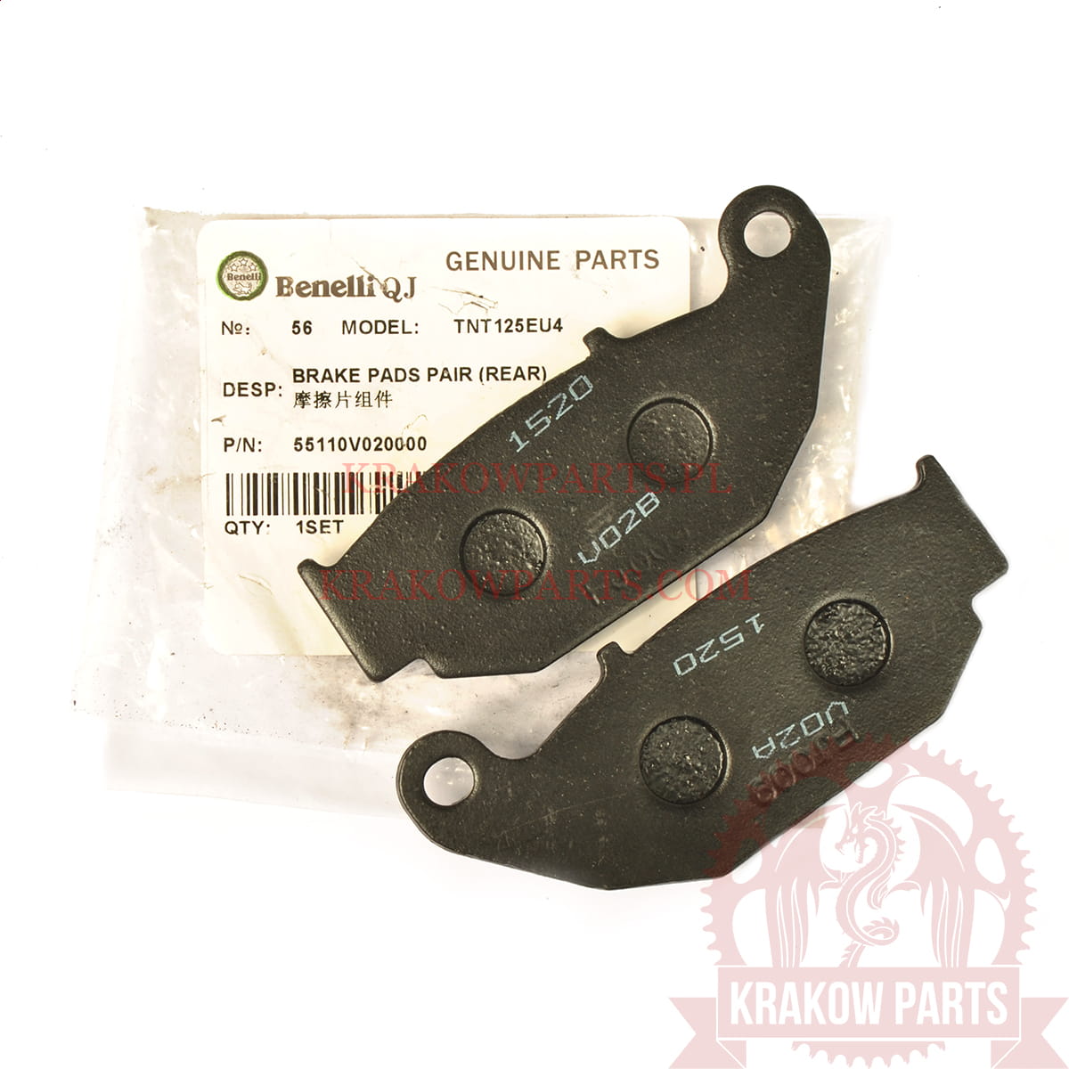REAR BRAKE PADS PAIR 55110V020000 Benelli TNT 125, original 55110V020000