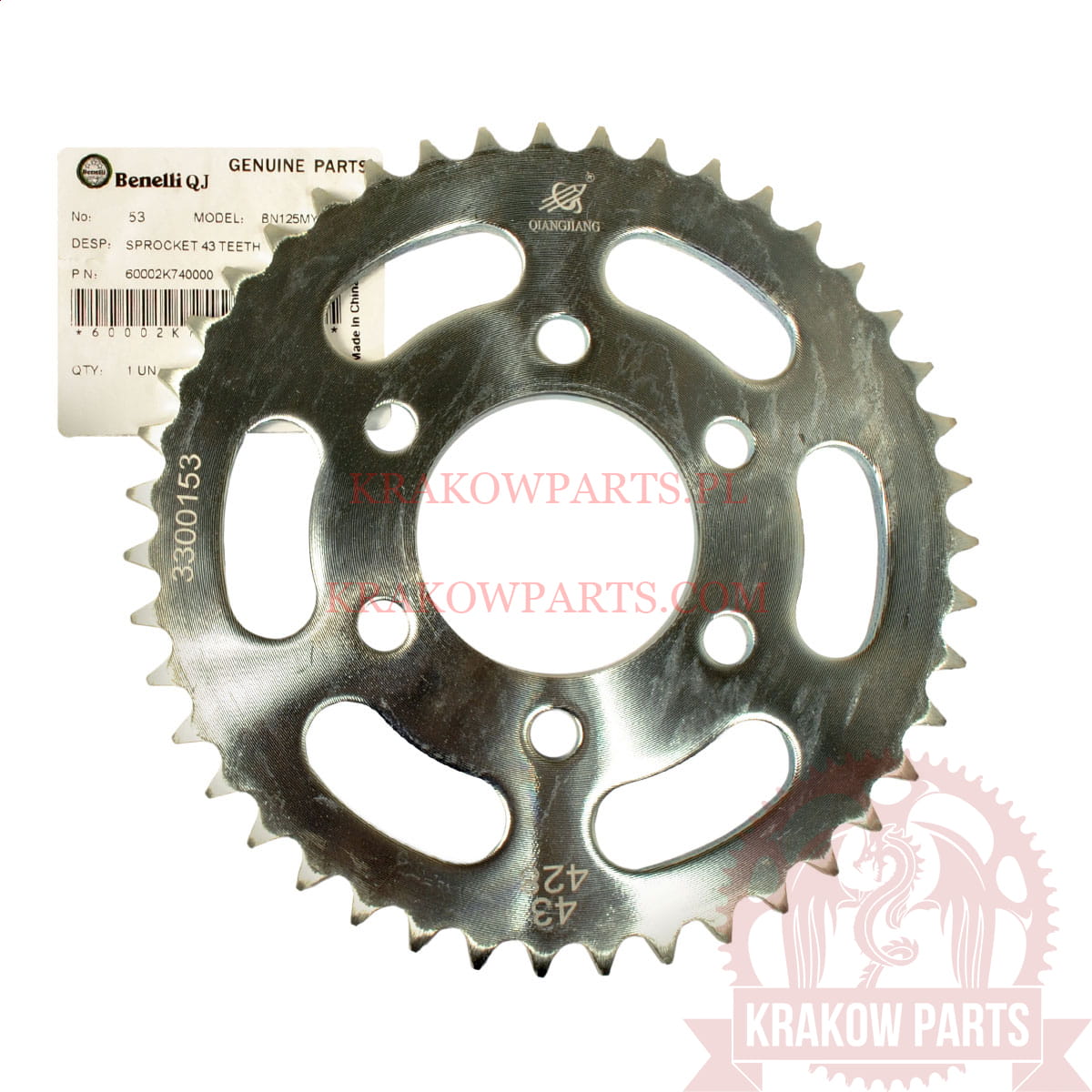 DRIVEN SPROCKET 43 Benelli-Keeway, RKS 125i Sport, 60002K740000 original