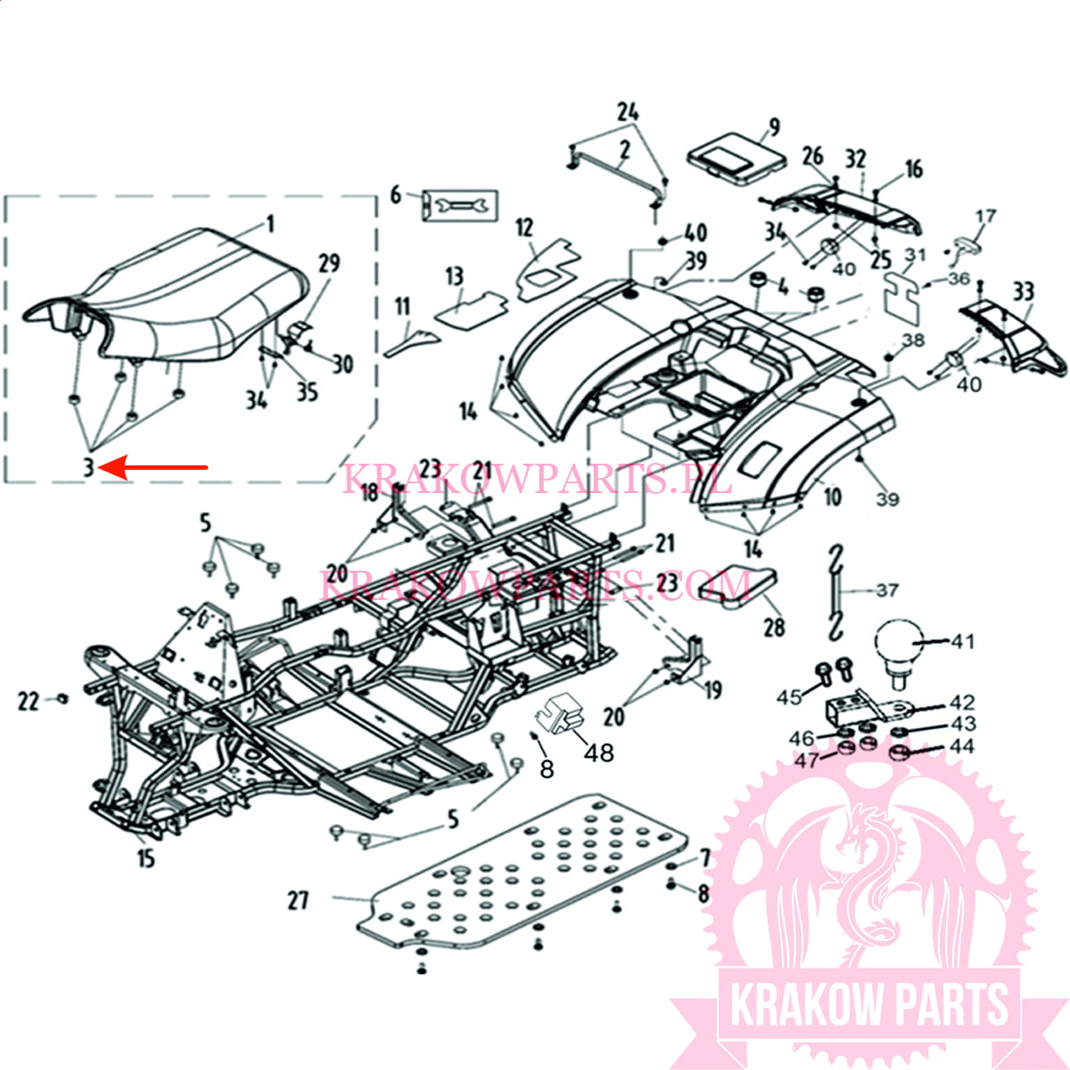 Podkładka gumowa kanapy Linhai ATV 300, ATV 400, ATV 500, M550, oryginał 25042