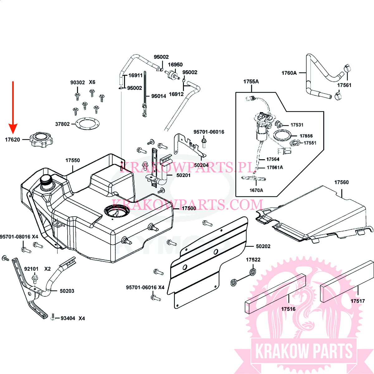 KOREK WLEWU PALIWA Kymco MXU 700, oryginał 17620-ADG6-E00