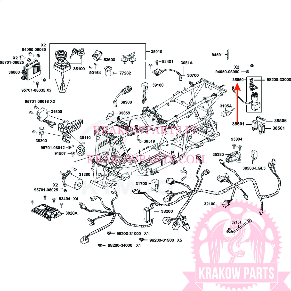 Starter relay solenoid Kymco MXU 400, MXU 500, UXV 700, original 35850-LDB5-E00