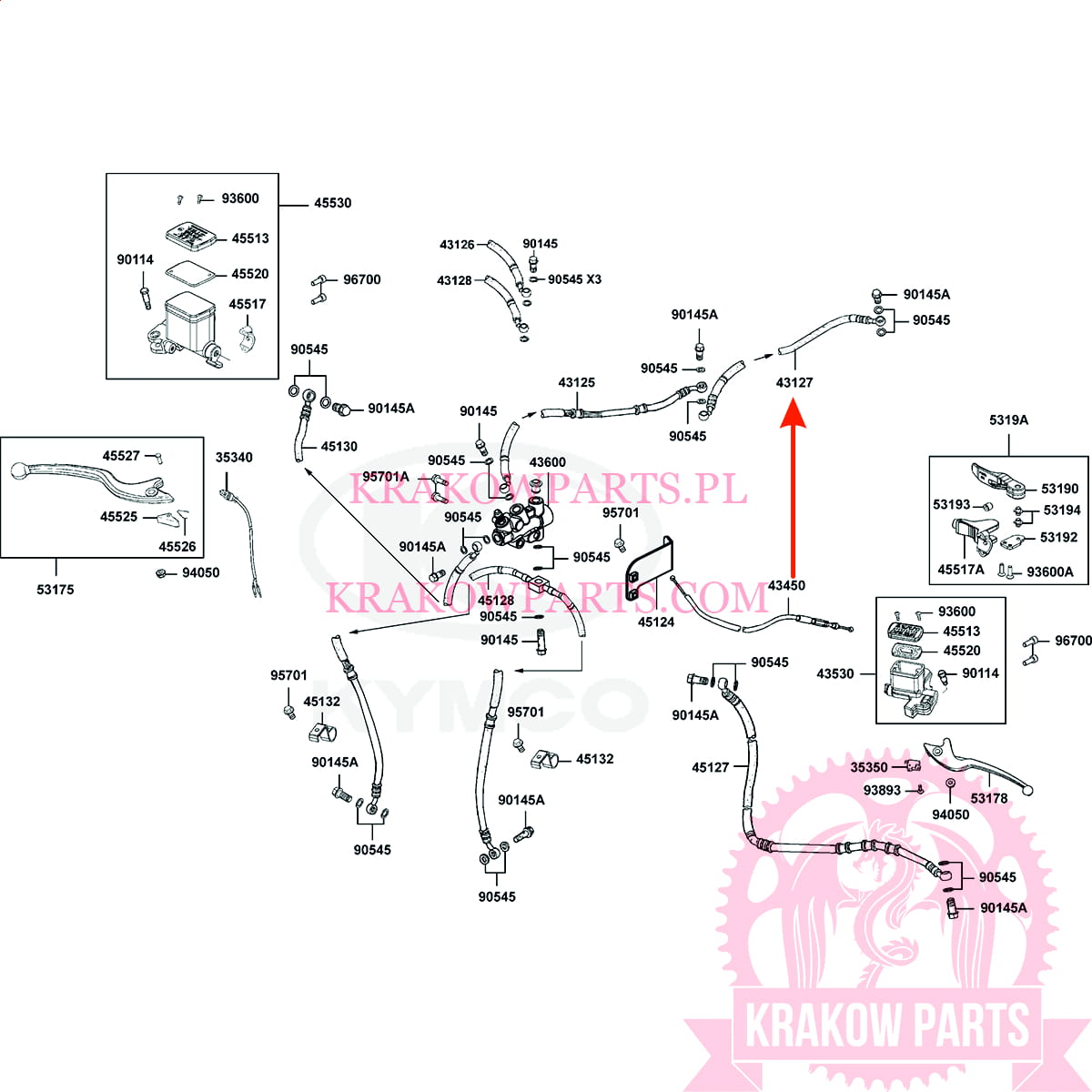 tube HAMULCOWY Kymco MXU 700, oryginał 43127-AEC8-E00
