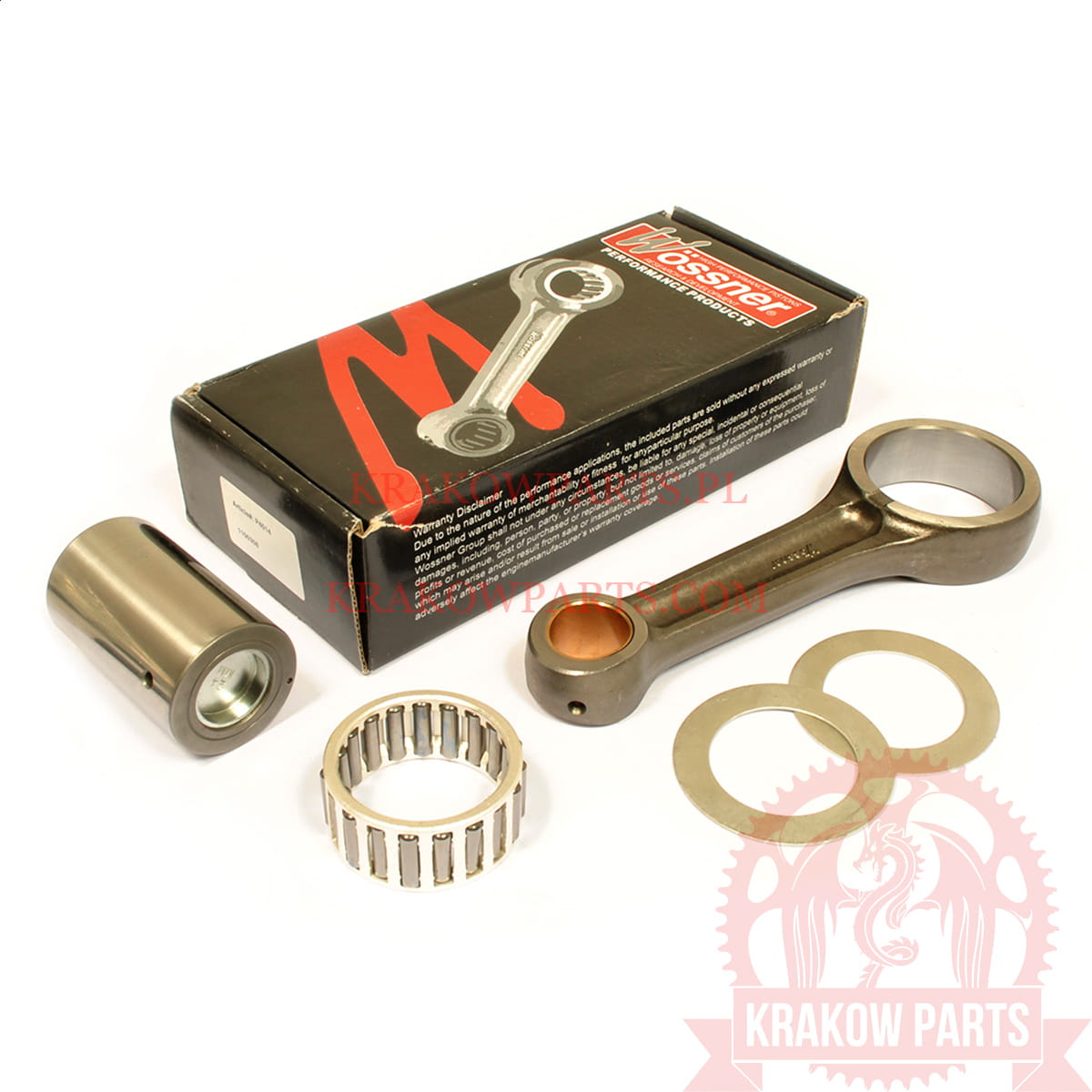 Korbowód niemieckiej firmy Wossner Opis ogólny: kompletny zestaw do regeneracji wału korbowego, produkt wykonany lepiej od oryginału, większa wytrzymałość, wysoka jakość wykonania, z produktów firmy Wossner korzystają zawodnicy z całego świata. Cena dotyczy kompletu. Zdjęcie poglądowe.