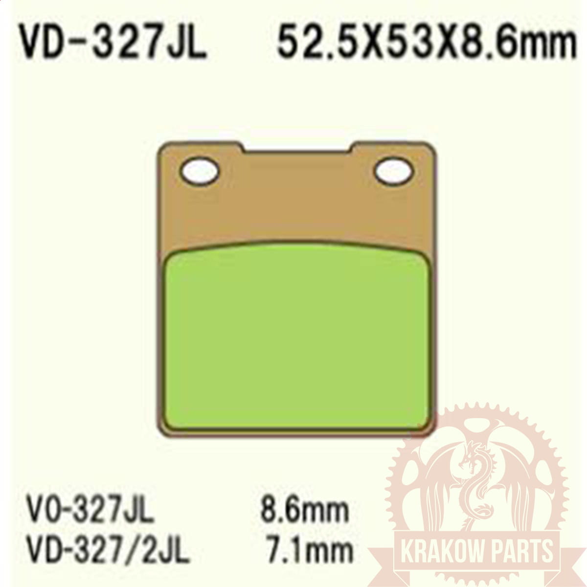 Komplet klocków hamulcowych firmy Vesrah Opis ogólny: oznaczenie: JL (utwardzane), produkt zawiera komplet klocków na jedną tarczę hamulcową - 2 sztuki, produkowane są zgodnie z certyfikatem TÜV (pozbawione w 100% azbestu), jakość OEM, dedykowane do motocykli sportowych i ciężkich oraz średnich turystycznych dla użytkowników preferujących sportowy charakter jazdy, powierzchnia cierna wykonana ze spiekanego metalu (mieszanka miedzi, cyny oraz grafitu), towar produkcji japońskiej, kompatybilne ze wszystkimi rodzajami tarcz hamulcowych, stabilny współczynnik tarcia w każdych warunkach atmosferycznych, wysoka precyzja i znakomite dozowanie. Wymiary: widoczne na zdjęciu. Cena dotyczy kompletu.