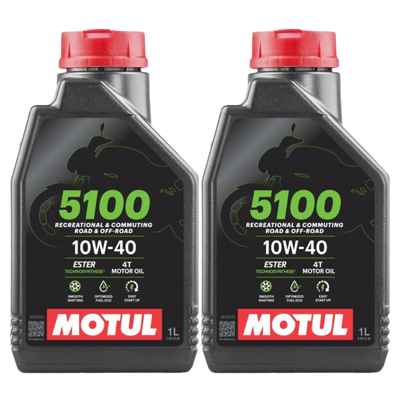 MOTUL 5100 4T 10W40 to olej silnikowy 4-suwowy zaprojektowany z myślą o wymagających silnikach motocyklowych. Bazuje na technologii MOTUL-Techno Synthesis, wzbogaconej o wysokiej jakości estrów i specjalne dodatki smarujące, które poprawiają wydajność i ochronę zarówno silnika, jak i sprzęgła oraz skrzyni biegów. Jest to olej stworzony z myślą o motocyklach o wysokich osiągach, takich jak motocykle sportowe, szosowe, crossowe, trailowe, off-road, enduro, trial, quady, skutery, itp.