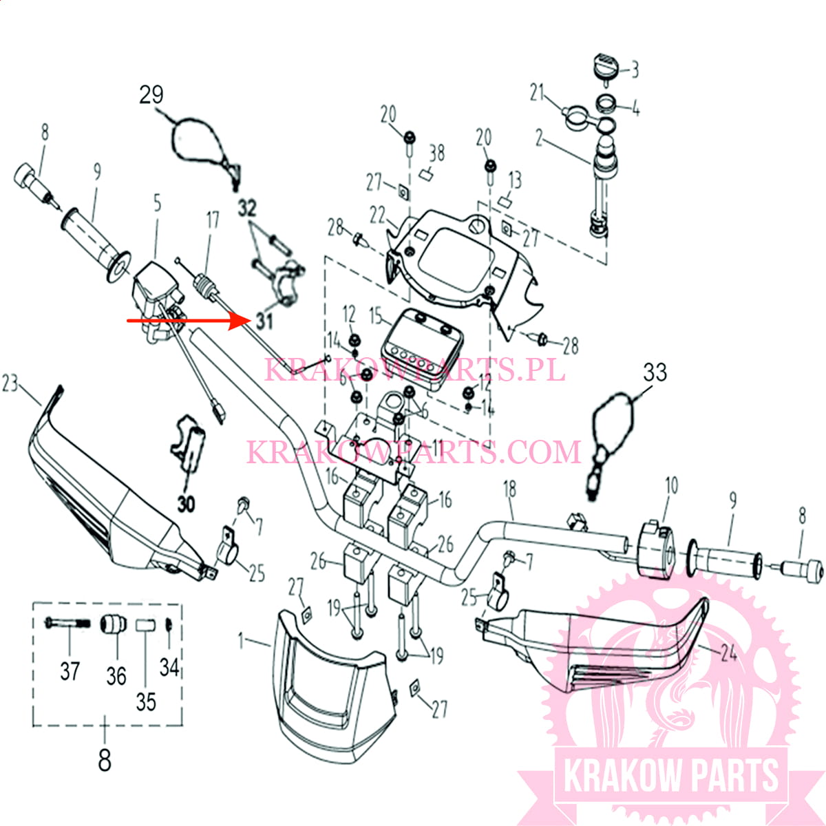 DOWN HOLDER,REAR VIEW MIRROR Linhai original 25526