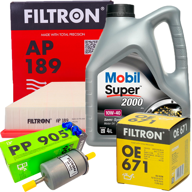 FILTRON Filtr powietrza AP 189 Filtr oleju OE 671 Filtr paliwa PP 905 Olej silnikowy 10W40 4L MOBIL 2000