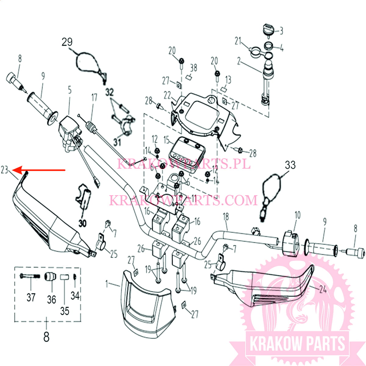 HANDLEBAR COVER RIGHT Linhai original 27417