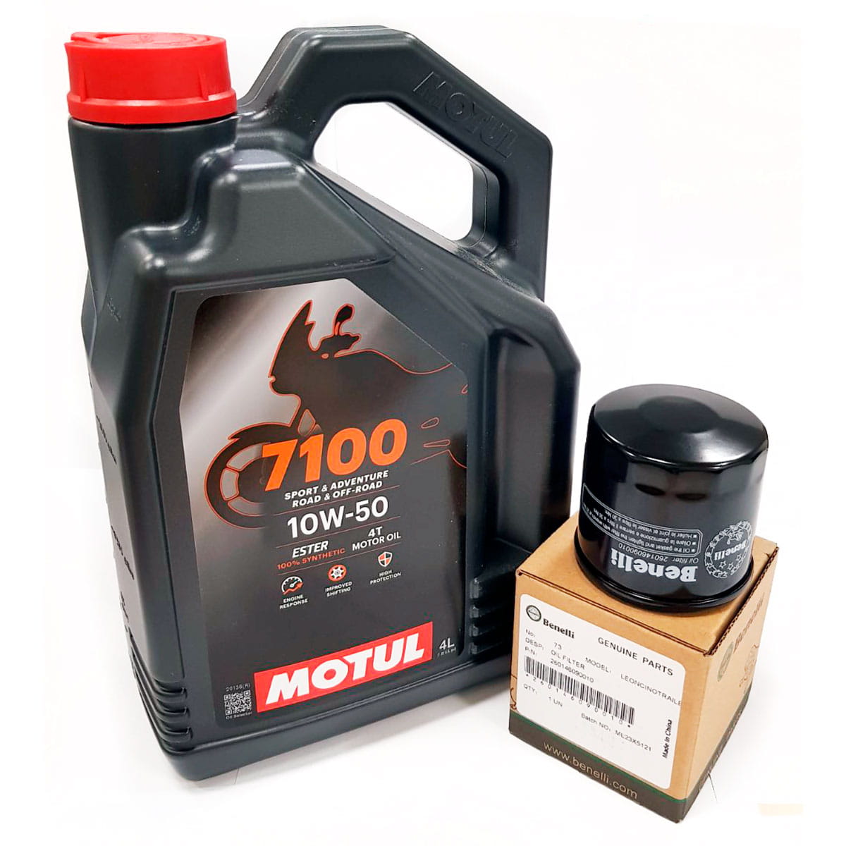 Olej silnikowy Motul 7100 10W50 4L + Filtr Oleju Benelli 500 Leoncino, 502 TRK, 752 S, 800 Leoncino