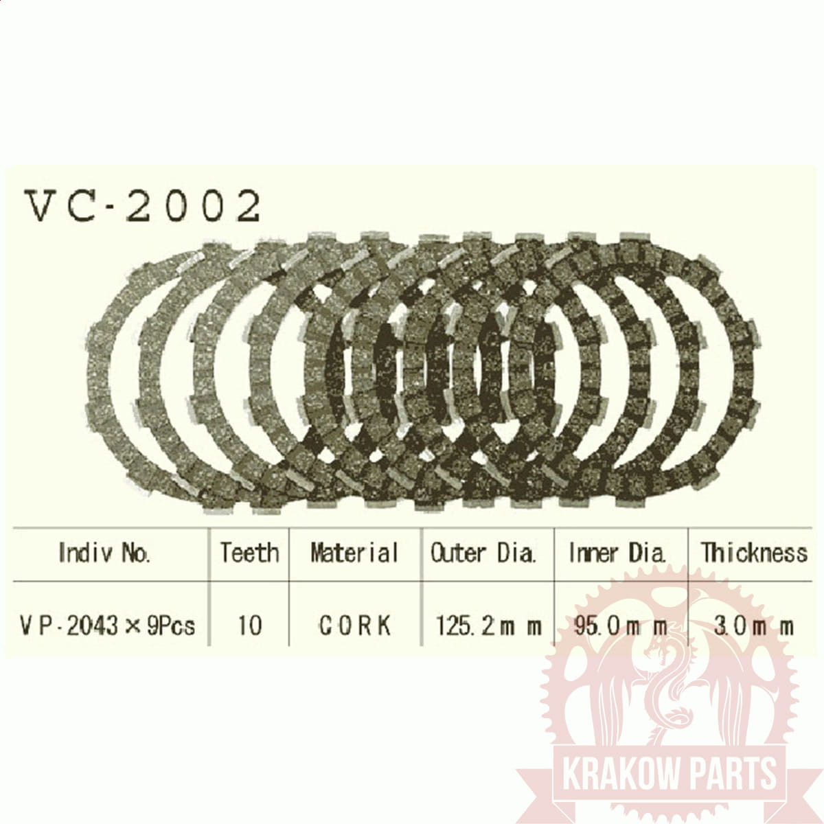Tarcze sprzęgłowe (sprzęgła) 125,2x95x3 mm, Yamaha FZR400R, FZR600 Fairing, Vesrah VC-2002